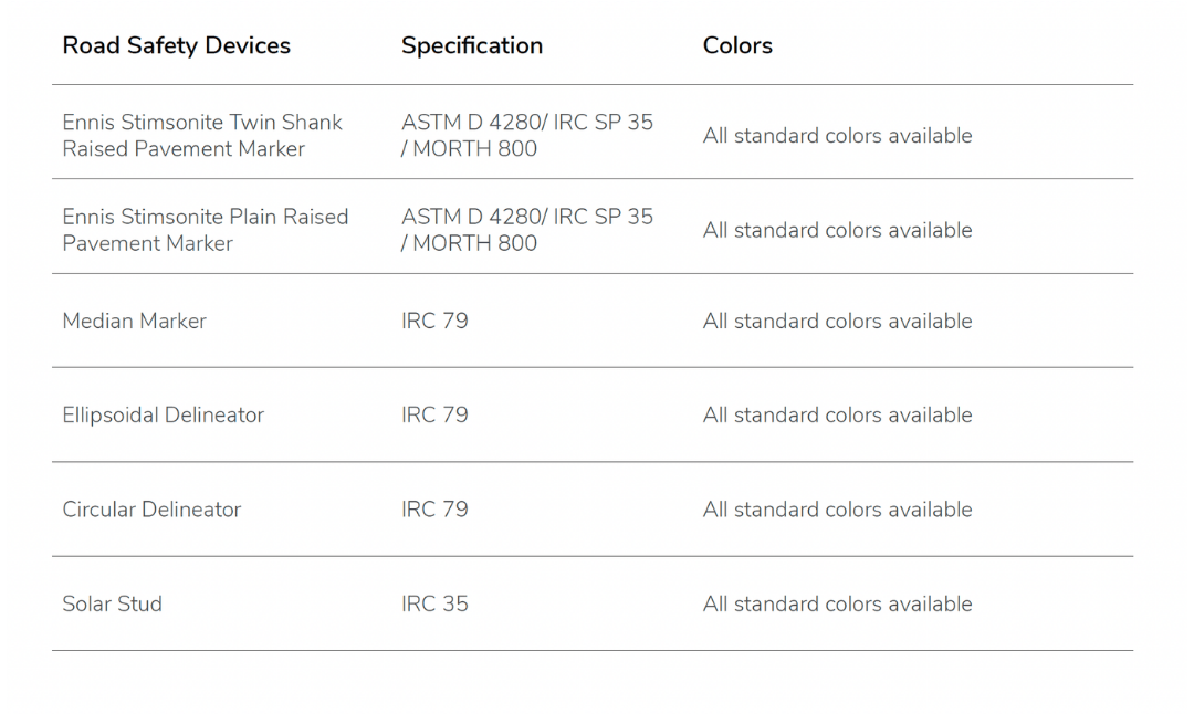 Road Safety Devices and other delineation devices along with the traffic signs and road markings form a complete system to guide the driver.