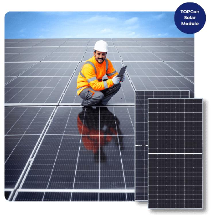 TOPCon Solar Modules feature advanced N-Type TOPCon technology, providing up to 23.25% module efficiency with very low performance degradation over time.